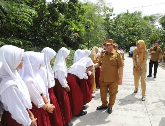 Kunjungan rombongan di Desa Bangsri, Kecamatan Plandaan, disambut antusias oleh siswa-siswi SMP Negeri 2 Plandaan dan sejumlah sekolah dasar setempat. Kehadiran Bupati dan Wakil Bupati disambut hangat oleh pelajar yang merasakan langsung dampak positif perbaikan jalan.