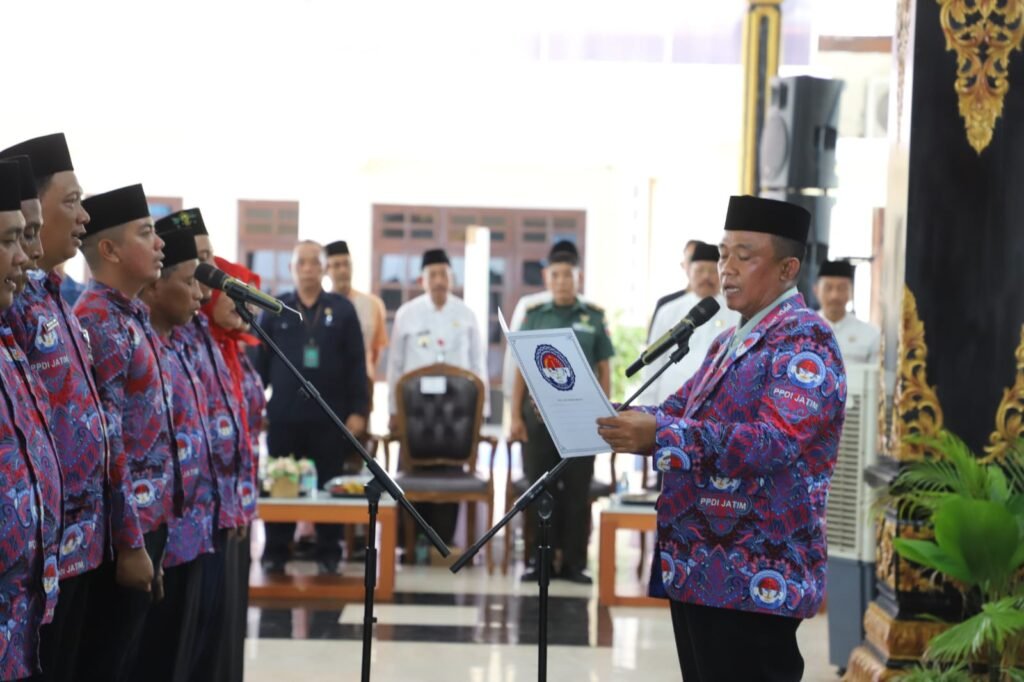 Prosesi pelantikan diawali dengan pembacaan Surat Keputusan PPDI Provinsi Jawa Timur, dilanjutkan dengan pengambilan sumpah jabatan, penyematan PIN simbolis, dan penyerahan SK kepada pengurus baru.