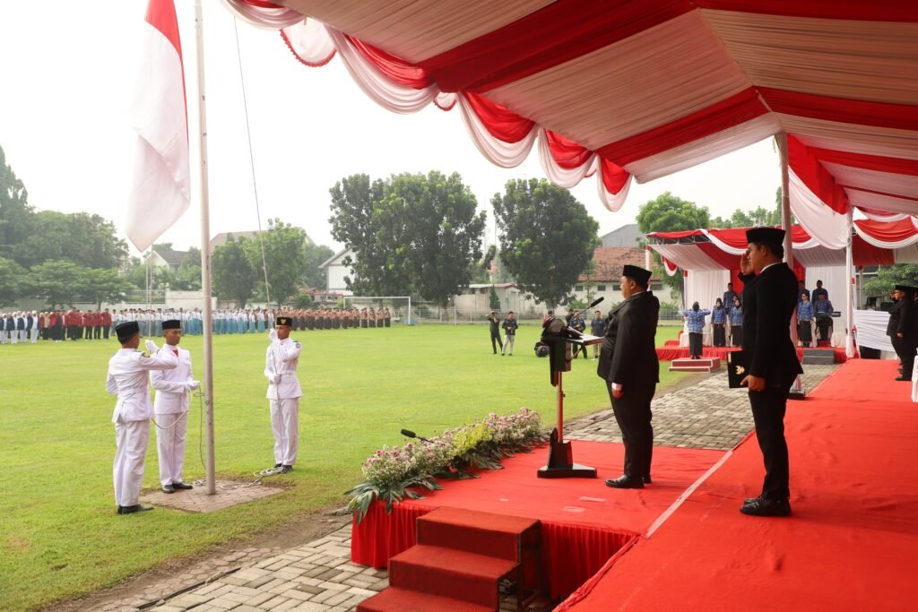 Bupati Jombang, Warsubi, S.H., M.Si bertindak sebagai Inspektur Upacara dan membacakan pidato Menteri Pemuda dan Olahraga Republik Indonesia, Erick Thohir.