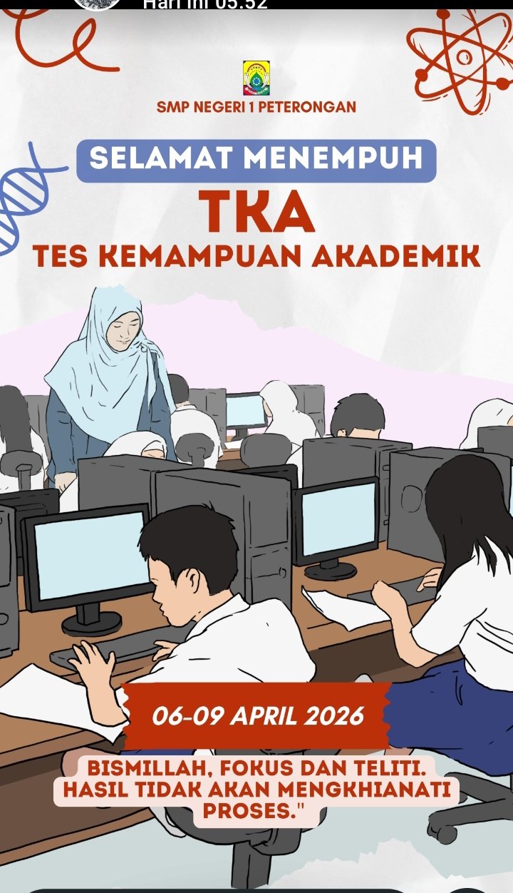 Team Kabar Online – SMP Negeri 1 Peterongan menggelar Tes Kemampuan Akademik (TKA) pada 6 April 2026 dengan suasana tertib, lancar, dan penuh semangat. Kegiatan ini menjadi bagian dari upaya sekolah dalam mengukur capaian akademik sekaligus meningkatkan kualitas pembelajaran.