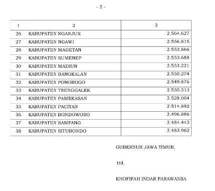 Berikut daftar UMK 2026 untuk 38 kabupaten/kota se-Jawa Timur: